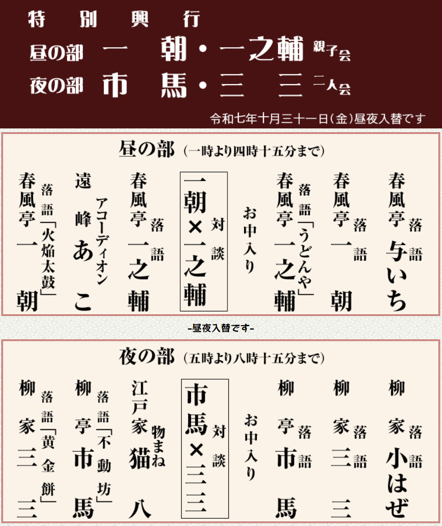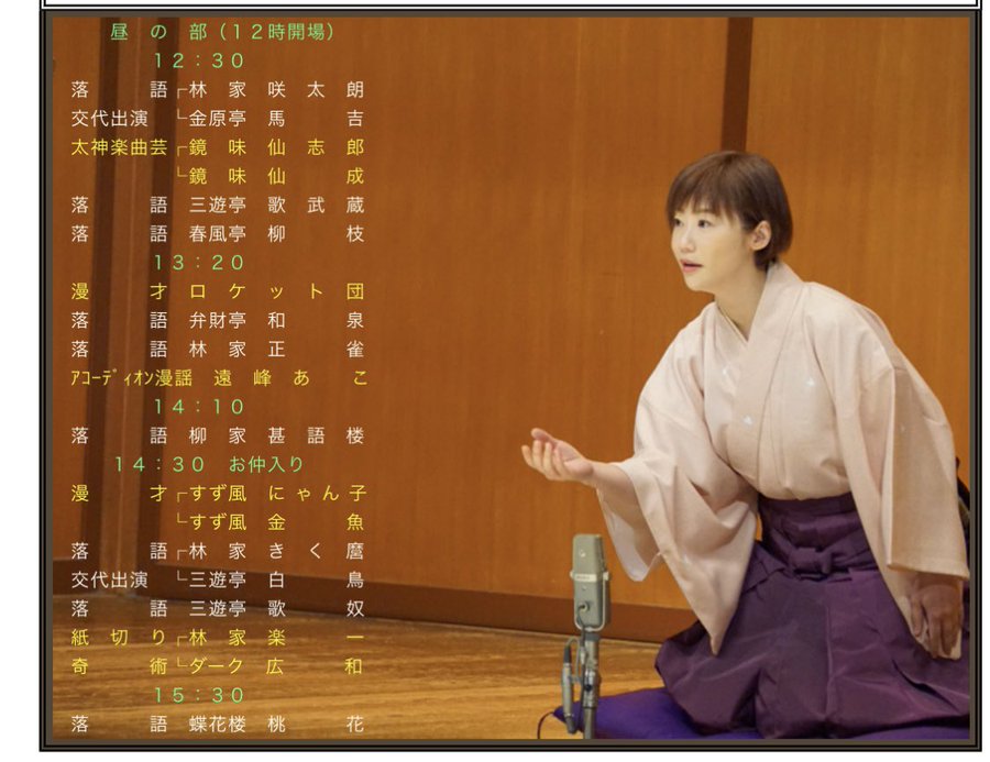 出演:橘家文蔵 入船亭扇橋 遠峰あこ