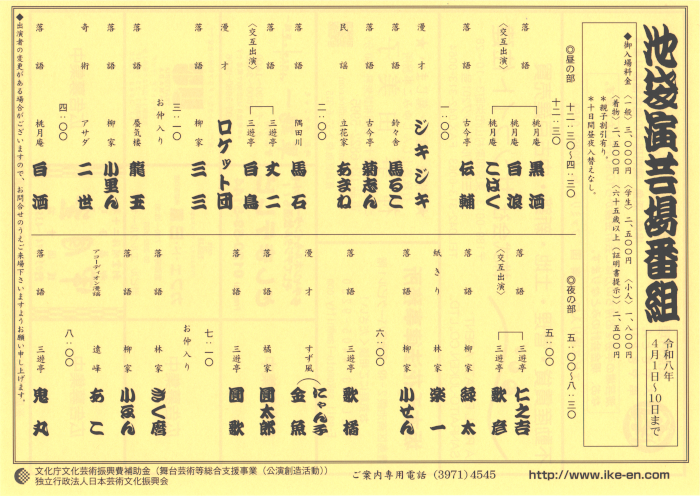 出演:林家彦いち 古今亭駒治 林家やま彦 林家きよ彦 遠峰あこ